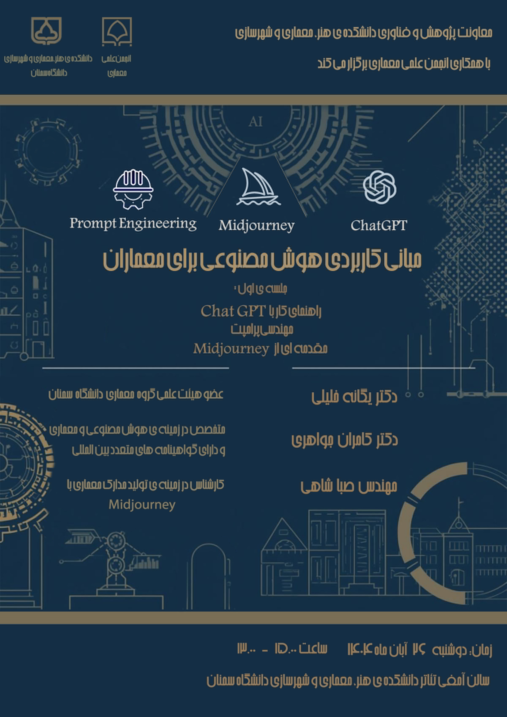 مبانی کاربردی هوش مصنوعی برای معماران 1404/08/26 - 09:53 تعداد بازدید: 11 کلمات کلیدی دانشگاه_سمناندانشکده_هنر